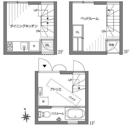 1Fはバイク格納可能・アトリエ・趣味のスペースとして利用可能