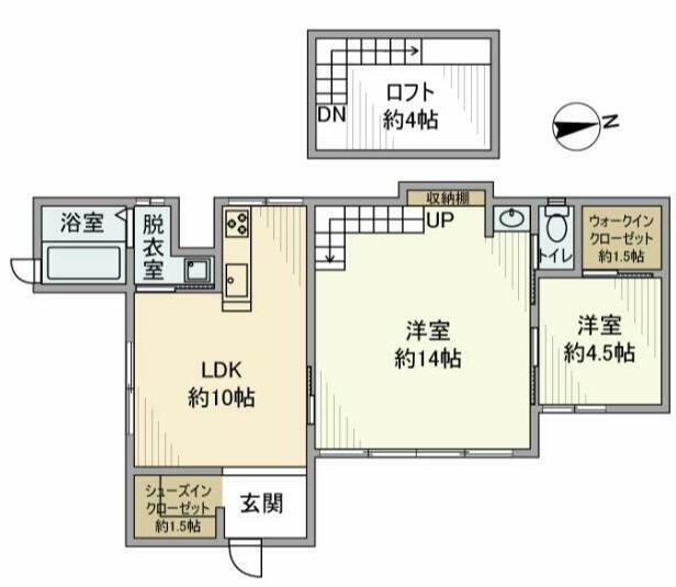 上がる形で4畳のロフトも