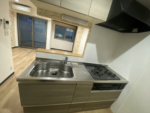 コンロは3口のグリル付き