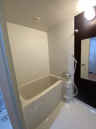 お風呂も1面ブラックな化粧板を採用