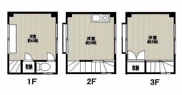 各階1部屋で1-3階3部屋とも