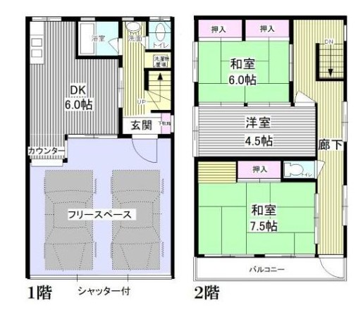 フリースペース有(多目的利用可能・普通自動車2台駐車可能)