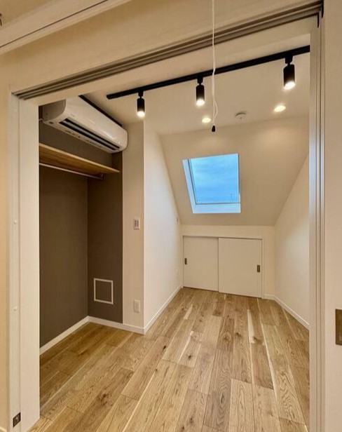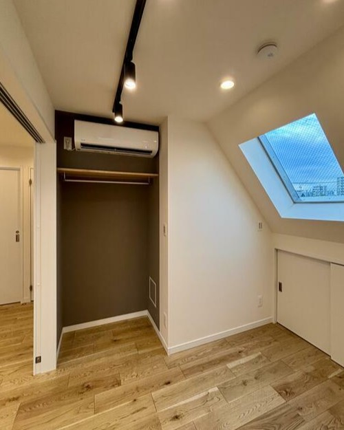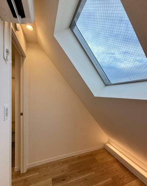 斜め壁を利用して、青空が見える窓が