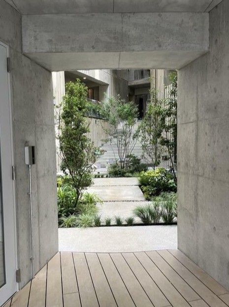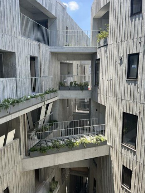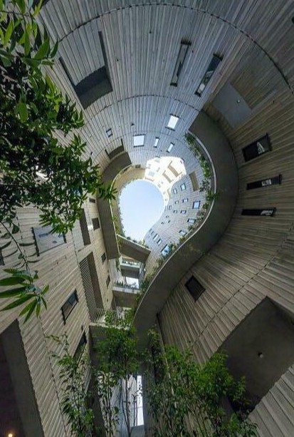 まるーく円形の吹き抜けが共用テラスから