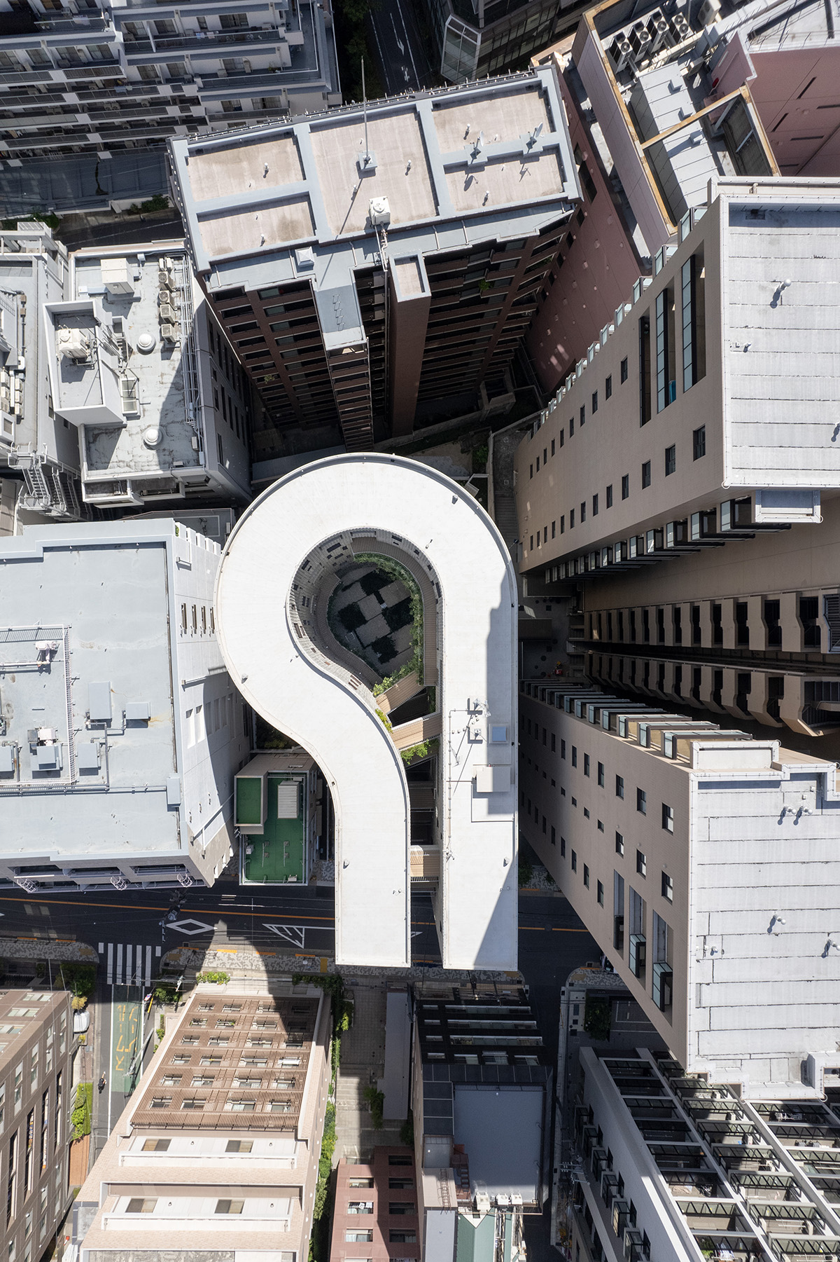 柔らかな外壁の曲線が8階建て各住戸内の