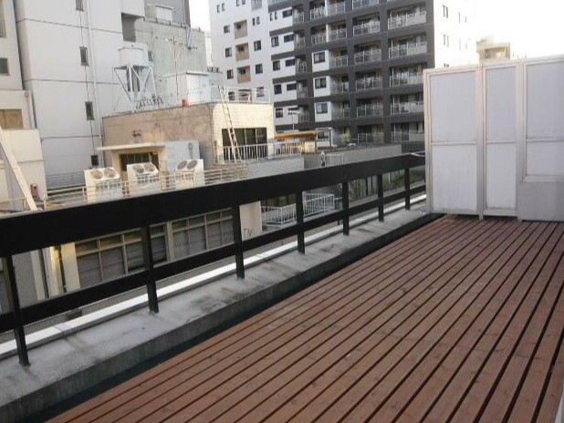 5階部分でビルに囲まれながらも